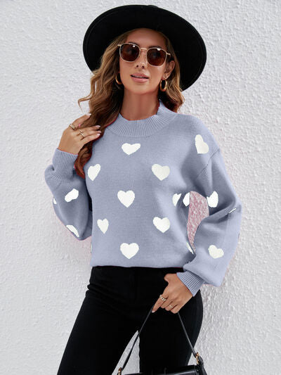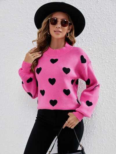 Heart Round Neck Dropped Shoulder Sweater