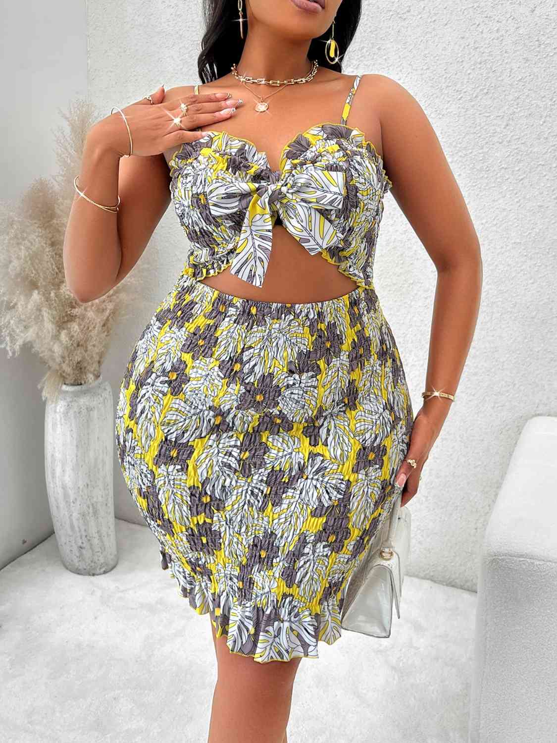 Plus Size Spaghetti Strap Cutout Ruffle Hem Dress