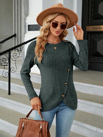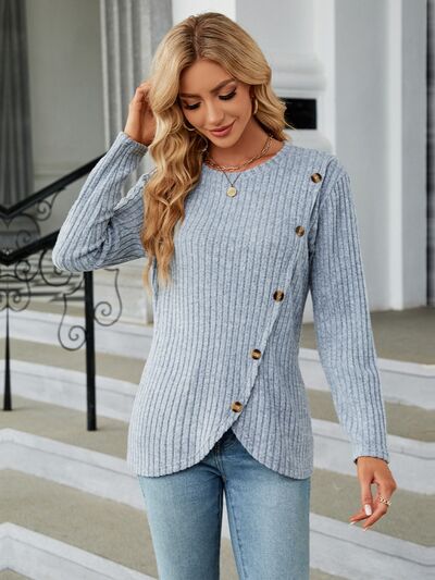 Round Neck Long Sleeve Blouse