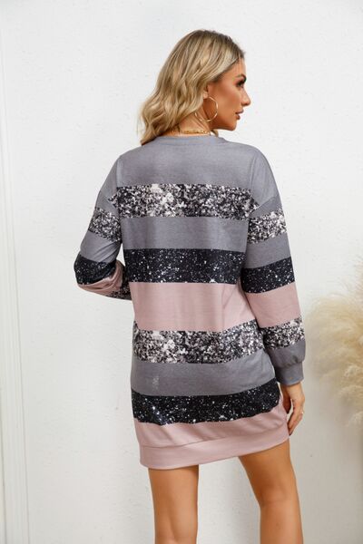 Striped Round Neck Dropped Shoulder Dress